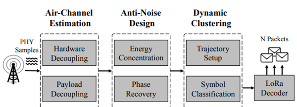 在与清华大学的合作论文中,双方团队提出了一种创新的并行LoRa解码框架——CD-LoRa。该方法首次利用无线信道的物理特征作为信号指纹,实现了对完全时间和频率重叠的LoRa信号无硬件改造、无调制方式变更的分离与解码。论文设计了相位校准模型,有效剥离硬件和载荷调制对信道特征的干扰,并结合能量集中及动态时序聚类方法,显著提升了系统在低信噪比和移动环境下的鲁棒性。实验结果显示,CD-LoRa可解码多达5个完全对齐的冲突包,网络吞吐量提升1.72倍。该方案特别适用于大规模物联网应用中需要多节点并发上报、事件驱动且信号高度同步的场景,如森林火灾监测、工业告警等。