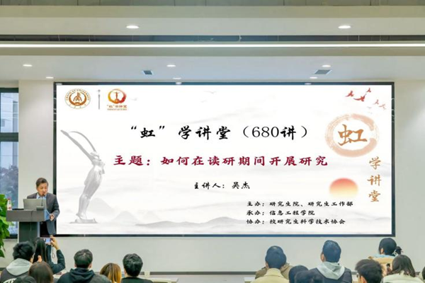 11月22日下午,吴杰教授受校长李树涛院士邀请在长安大学“虹学讲堂”为研究生们作了题为《如何在读研期间进行研究》的专题报告。