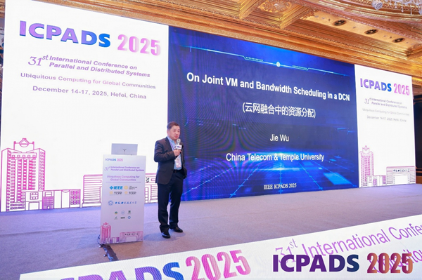 12月16日,IEEE国际并行与分布式系统会议(ICPADS 2025)在安徽合肥召开。中国电信首席科学家、云计算研究院院长吴杰受邀发表题为“On Joint VM and Bandwidth Scheduling in a DCN”的主旨演讲,吸引了来自全球并行与分布式系统领域的众多专家学者。