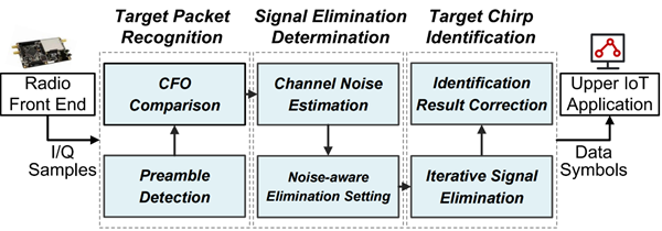 其中,云计算研究院于夫研究员在吴杰院长的指导下完成的论文《Enabling Reliable and Real-time Packet Reception in User-defined Overlapping LoRa Channels》着眼于物联网数据大规模上云过程中频繁发生的LoRaWAN信道传输冲突问题。该工作创新性地提出了基于时域信号消除的抗扰解调特征构造方法,为不同信号构造可识别的能量损耗特征。为了进一步提升解调特征的稳定性。作者首先从理论上分析了信号消除的最优位置,并进一步提出基于噪声感知的消除参数设置方法。此外,还设计了基于数据包中心频率偏移差异的目标数据包识别机制。在实际部署的LoRa网络中的实验结果表明,与现有方法相比,本文所提出的技术可将平均数据包接收率提升3.5倍,被审稿人评价为“Opens the door to latency-sensitive IoT applications”。合作作者包括云计算研究院胡存琛、王一多、北京邮电大学郑霄龙教授等。